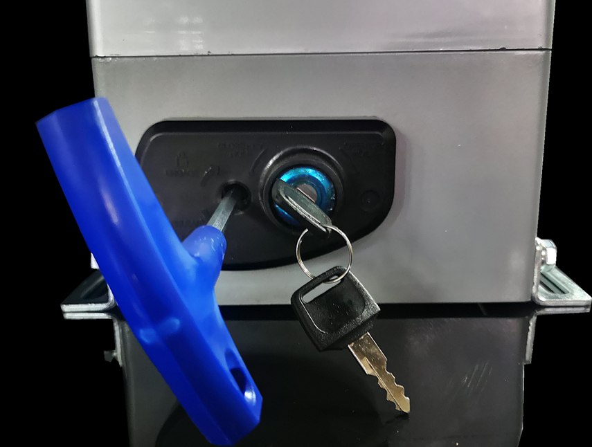 2、停電應(yīng)急->電機(jī)側(cè)旁留有鑰匙可打開離合開關(guān),手動(dòng)開啟門。